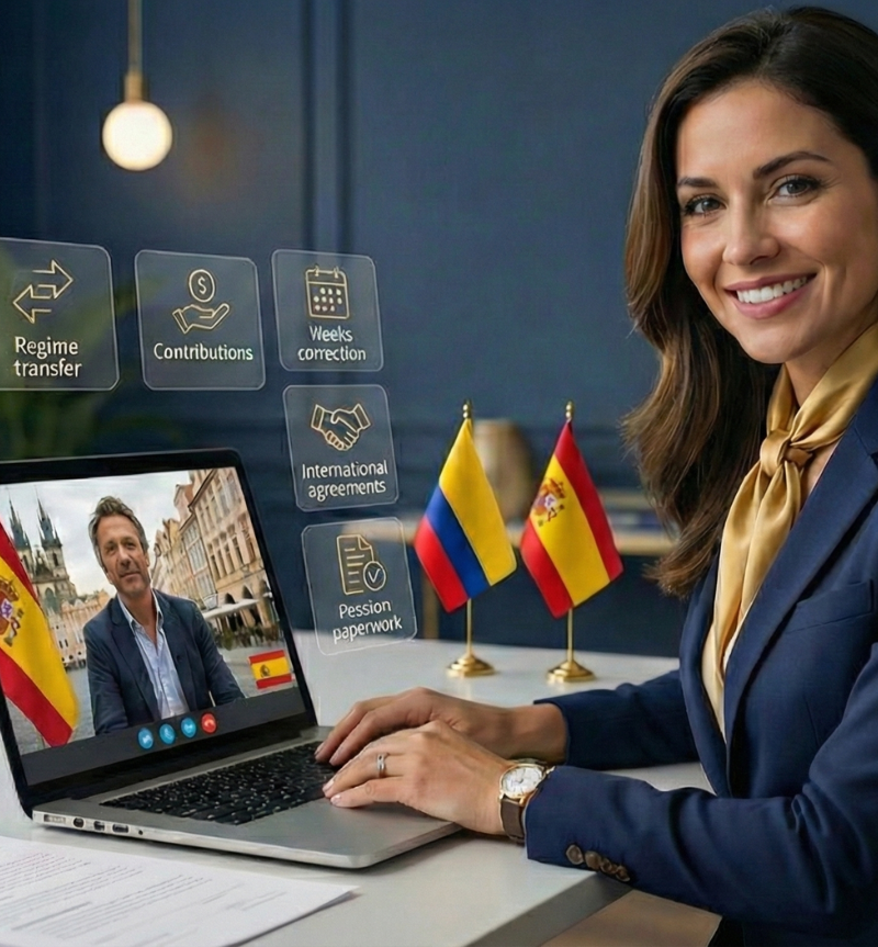 Te acompañamos desde cualquier país con asesoría pensional integral: afiliación y traslado de régimen, gestión de aportes y cotizaciones, estudios de planeación financiera, corrección y recuperación de semanas mediante cálculo actuarial, aplicación de convenios internacionales de seguridad social, y trámites completos de pensión o devolución de saldos. Tu pensión sin fronteras.